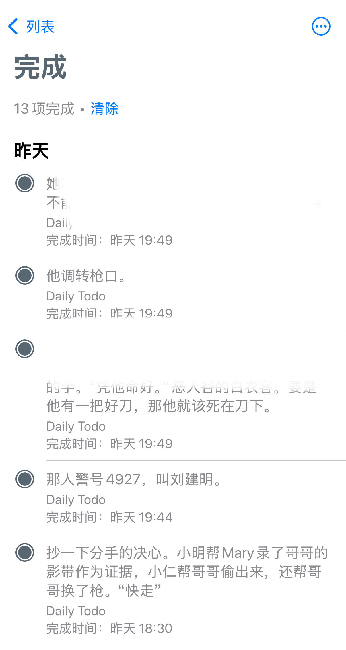 现在的平替是手机自带提醒事项,也可以建(手动)列表。写过了直接勾掉(归档)。还可以备注可以插图还可以打标签,发现甚至可以做智能列表。也算是简化的平替一下。